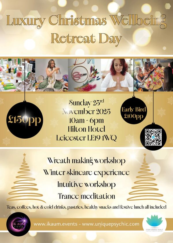 Immerse yourself in Wellbeing activities self-healing and lush skincare experiences at our Luxury Christmas Wellbeing Retreat Day with Mandeep Kaur.